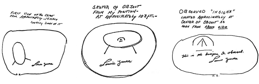 Sketches of the object and the insignia on its side made by Zamora from the U.S. Air Force Project Blue Book